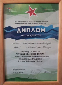 - представление результатов поисковой деятельности за 2013-2014;