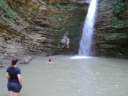 купание в водопаде